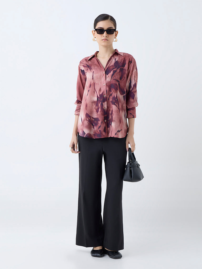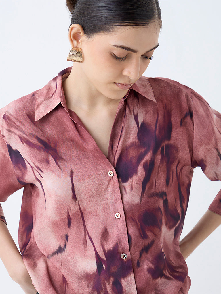 Contemporary flair meets formal precision in this wine shirt from Wardrobe, defined by a tie-dye profile that introduces an artistic edge. Spun from an ultra-lightweight fabric, it is designed with a smart collar and button placket, while full sleeves lend a polished finish.