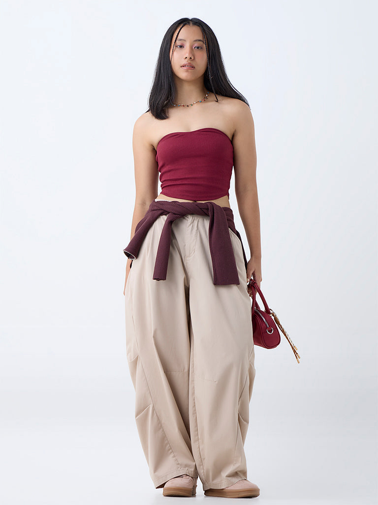 Nuon Wine Ribbed Cotton-Blend Tube Top