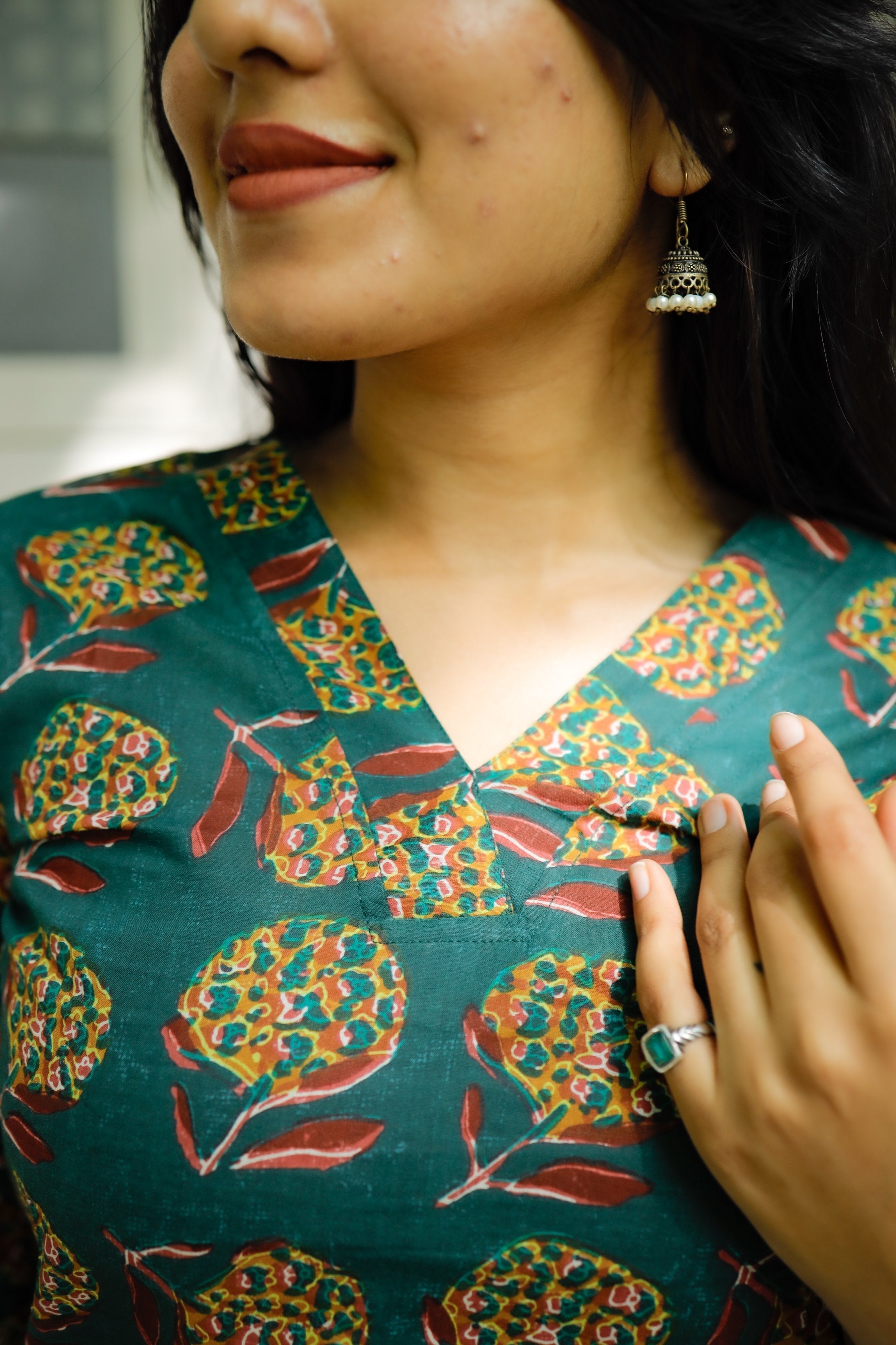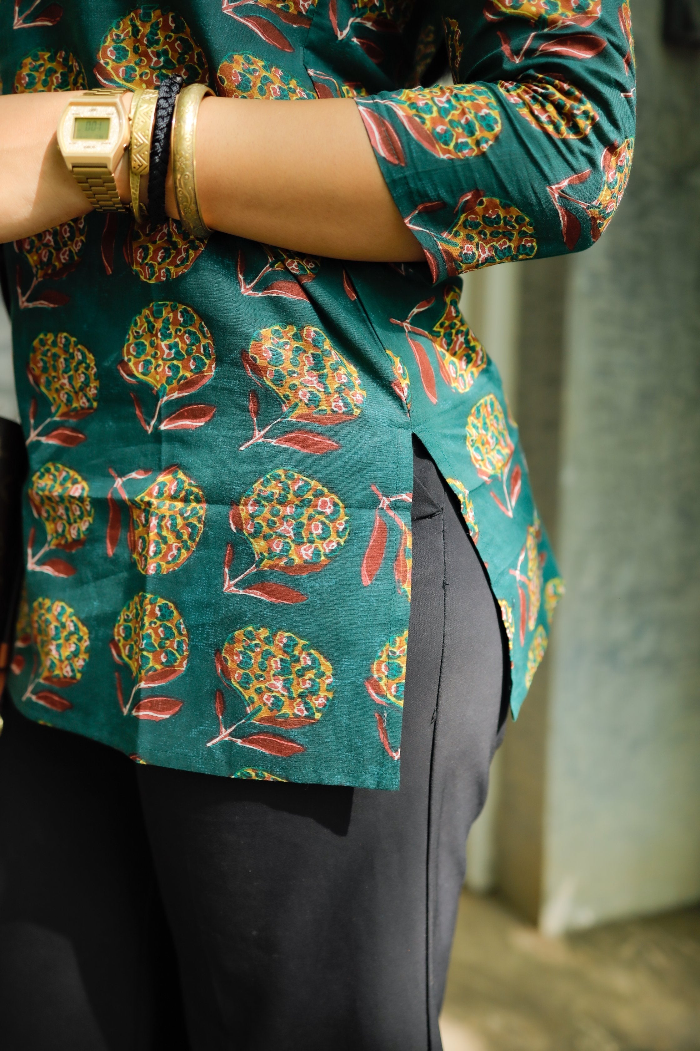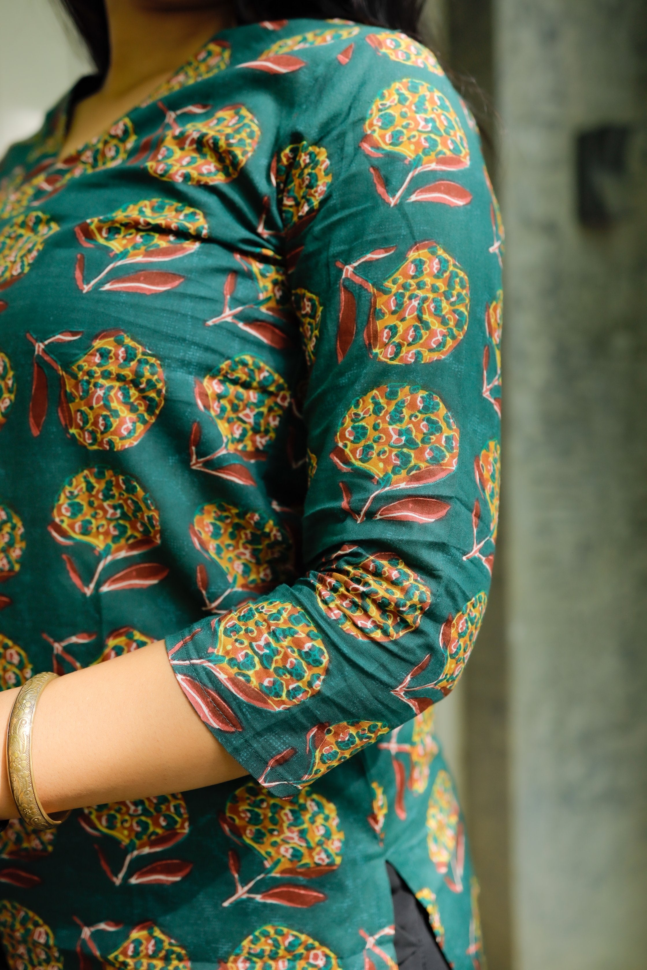 Short Kurti - 11 - Organic Cotton short kurti in dark green