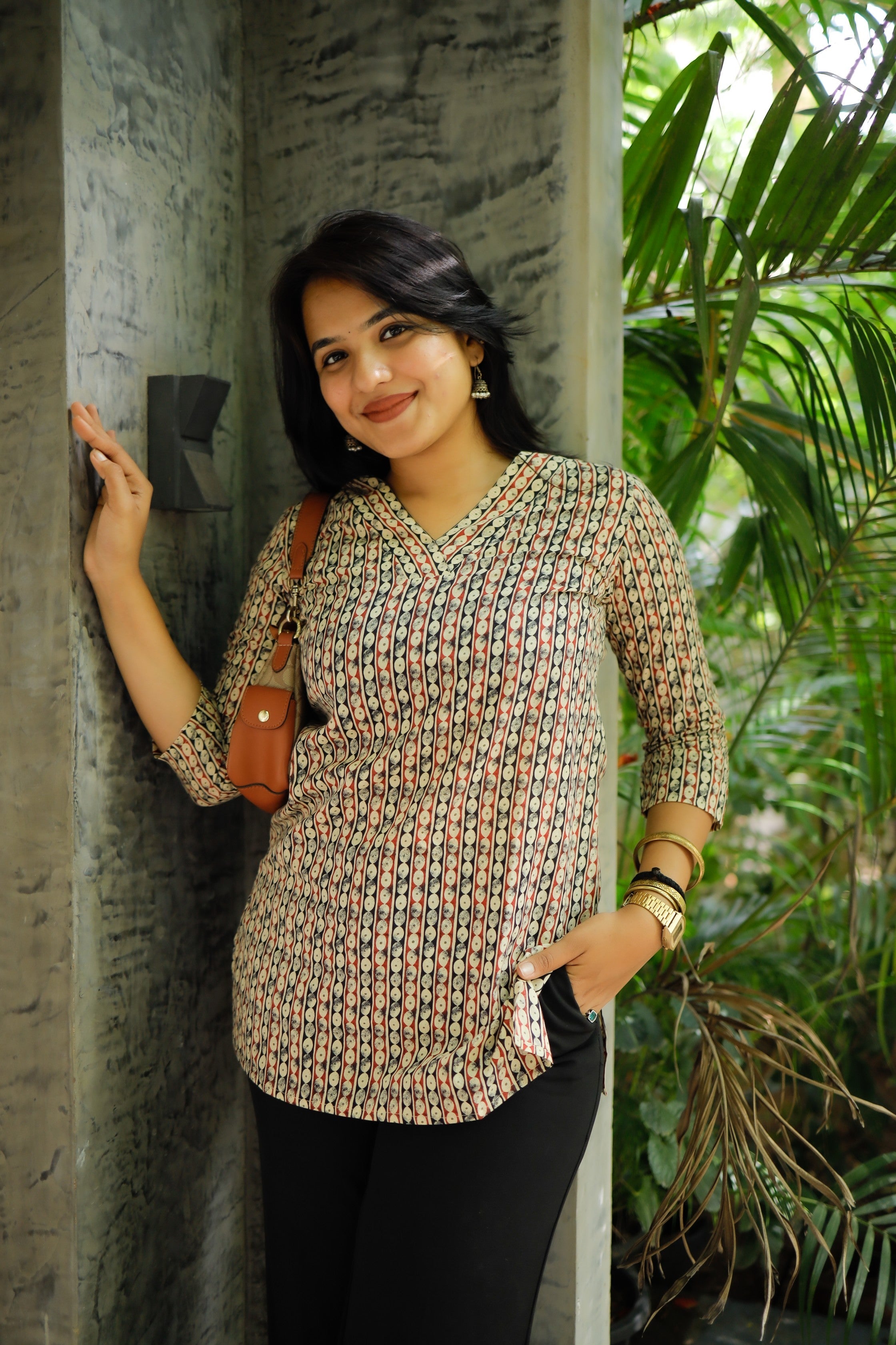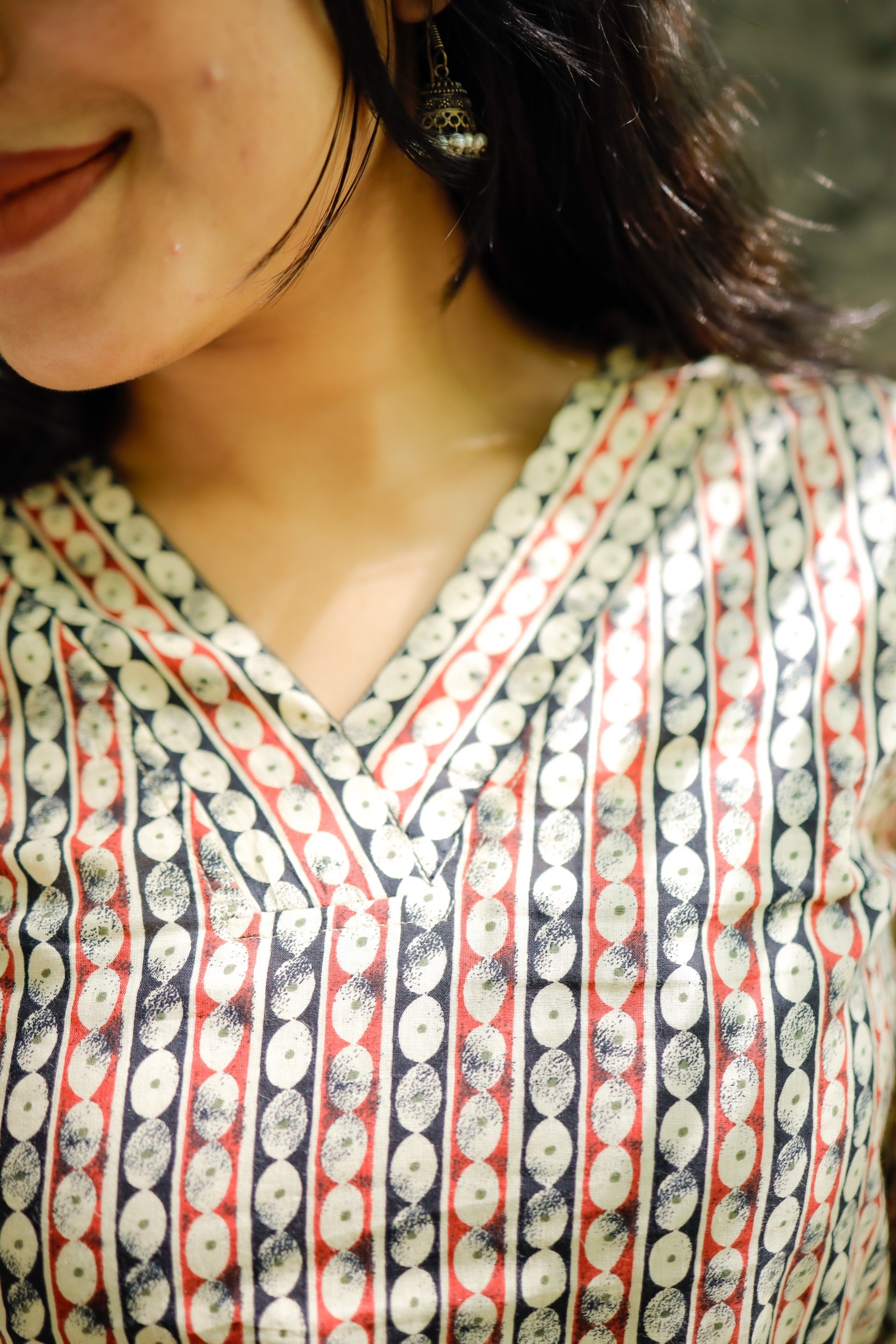 Comfy and super chic cotton short kurti in classy and cute prints with smart neck and sleeve pattern. Perfect to pair it with jeans / culottes / trousers. Organic cotton is used making it the most apt for this summer. Perfect office / college wear Colour : Black & Red...