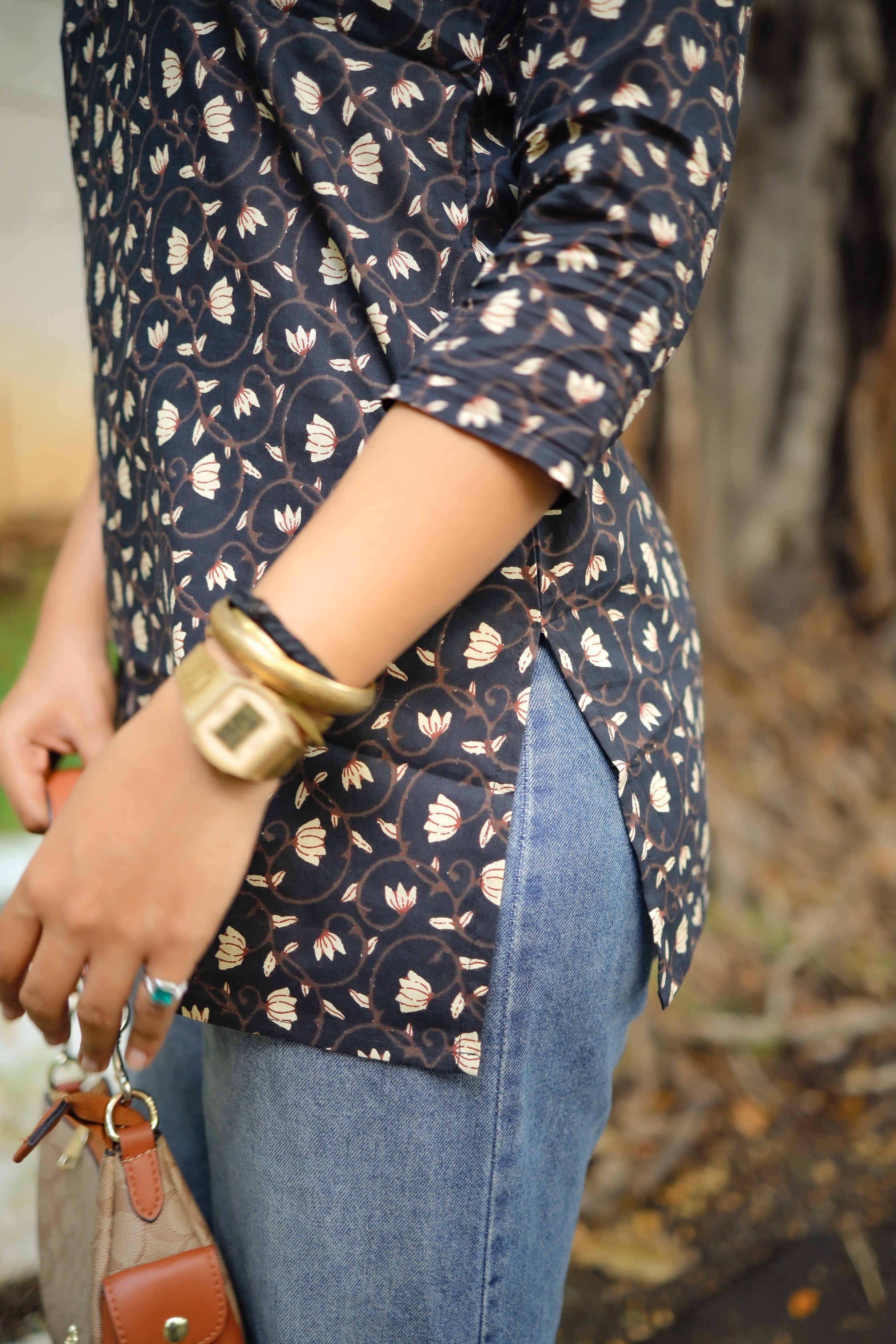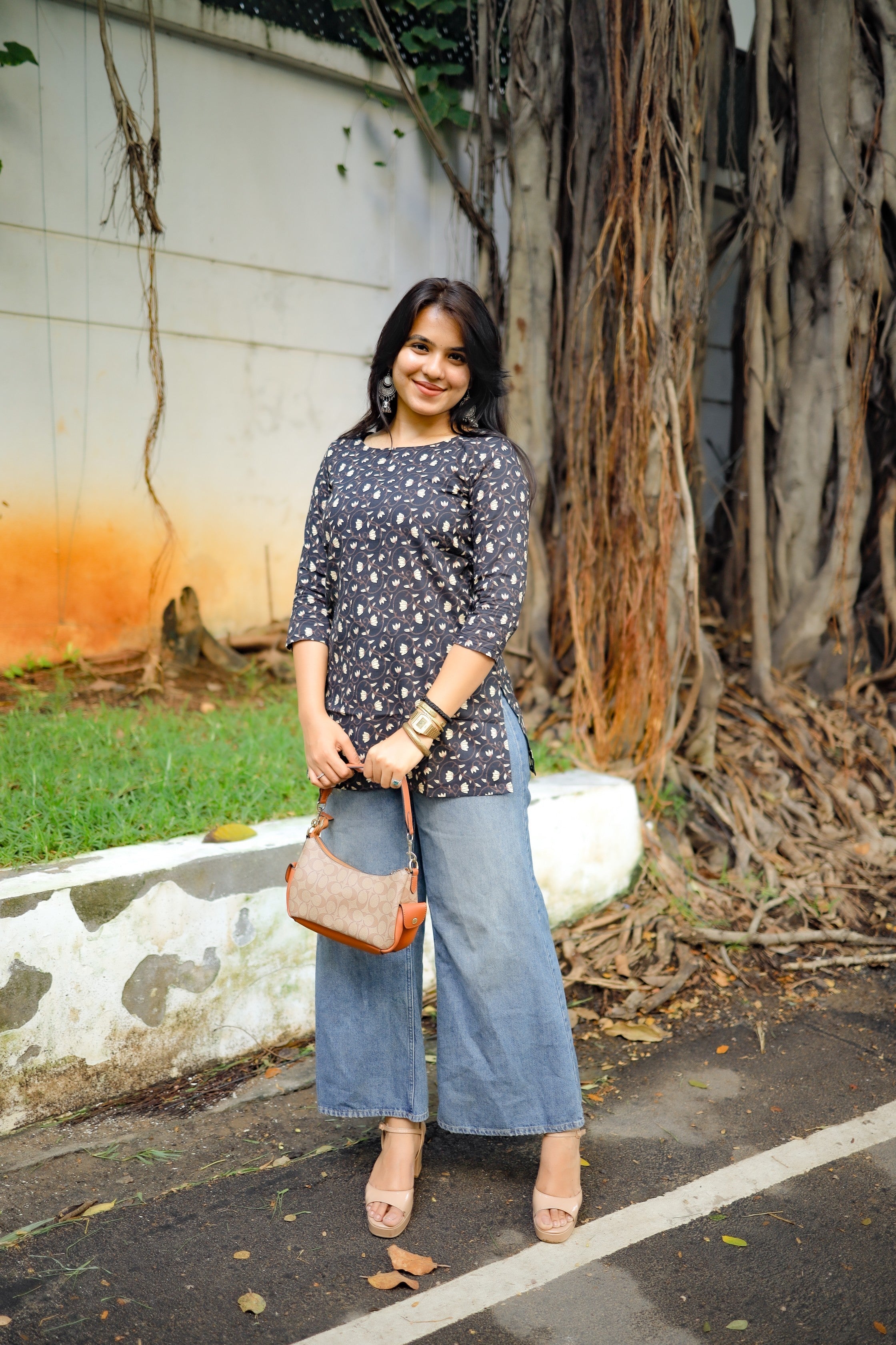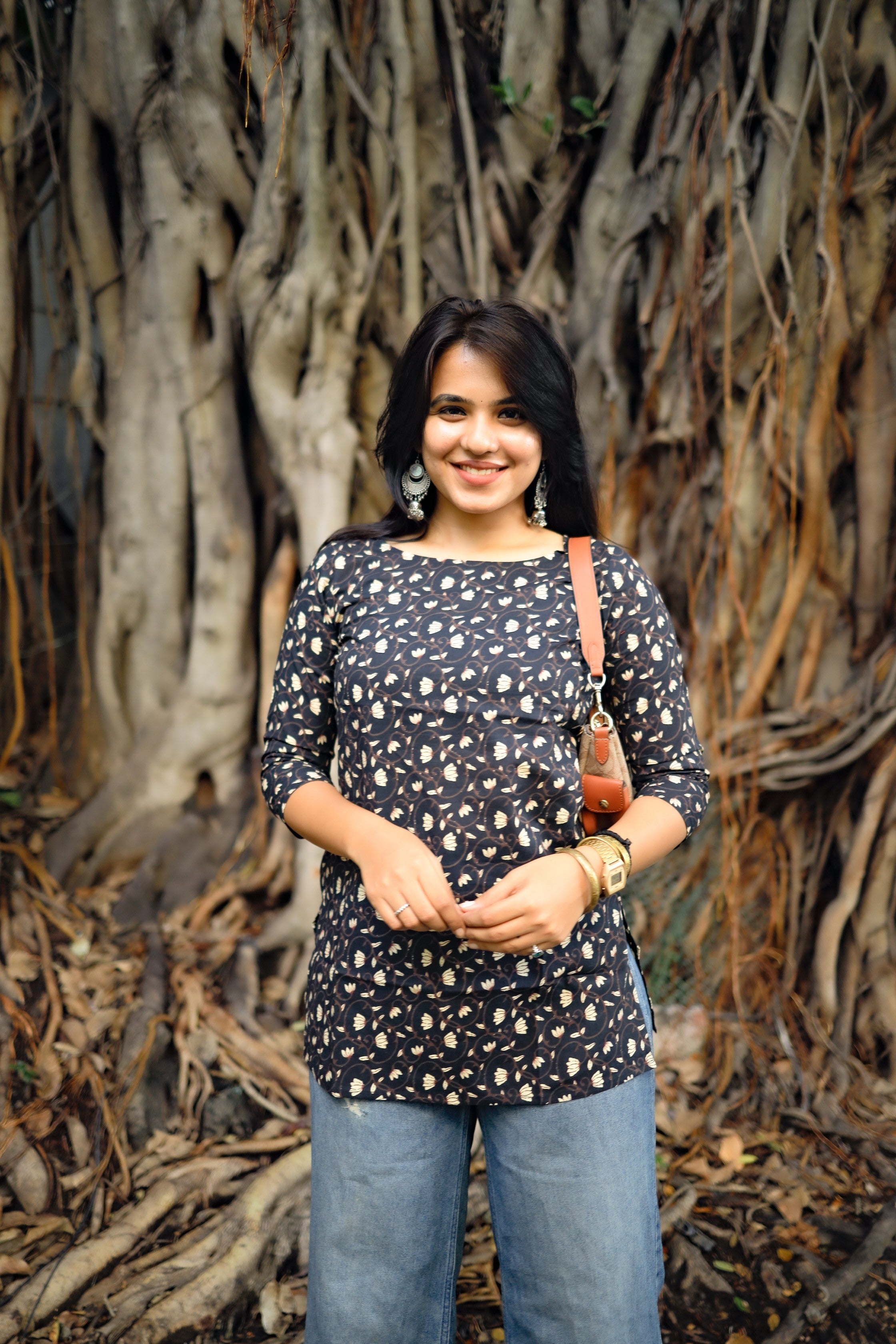 Comfy and super chic cotton short kurti in classy and cute prints with smart neck and sleeve pattern. Perfect to pair it with jeans / culottes / trousers. Organic cotton is used making it the most apt for this summer.