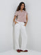 This white t-shirt from Studiofit stands out with its ribbed texture that adds a refined touch to your athleisure needs. Designed with a clean V-neck and short sleeves, it's built from a cozy cotton-blend fabric that ensures all-day comfort.