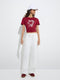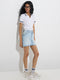 This white t-shirt from Studiofit blends comfort with sporty flair. Woven from a snug cotton-blend fabric with a ribbed texture, it features raglan sleeves and a round neck for a relaxed fit. The bold text print coupled with speckle designs lends a playful finish, perfect for casual everyday wear.